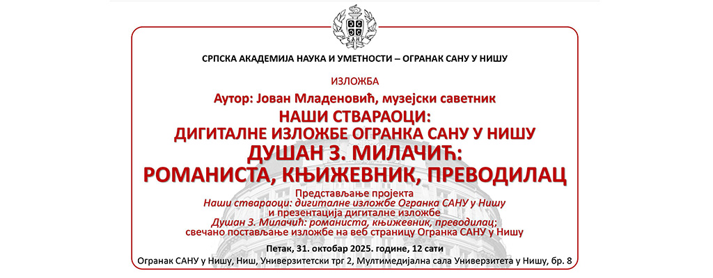 Наши ствараоци: дигиталне изложбе Огранка САНУ у Нишу Душан З. Милачић: романиста, књижевник, преводилац