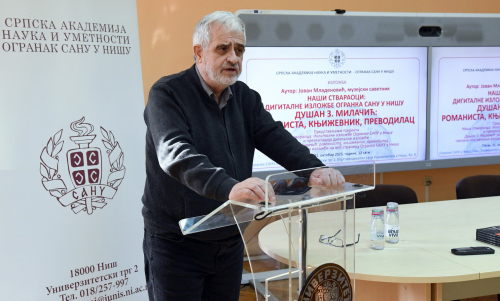 Представљање пројекта Наши ствараоци: дигиталне изложбе Огранка САНУ у Нишу и презентација дигиталне изложбе Душан З. Милачић: романиста, књижевник, преводилац; свечано постављање изложбе на веб страницу Огранка САНУ у Нишу.