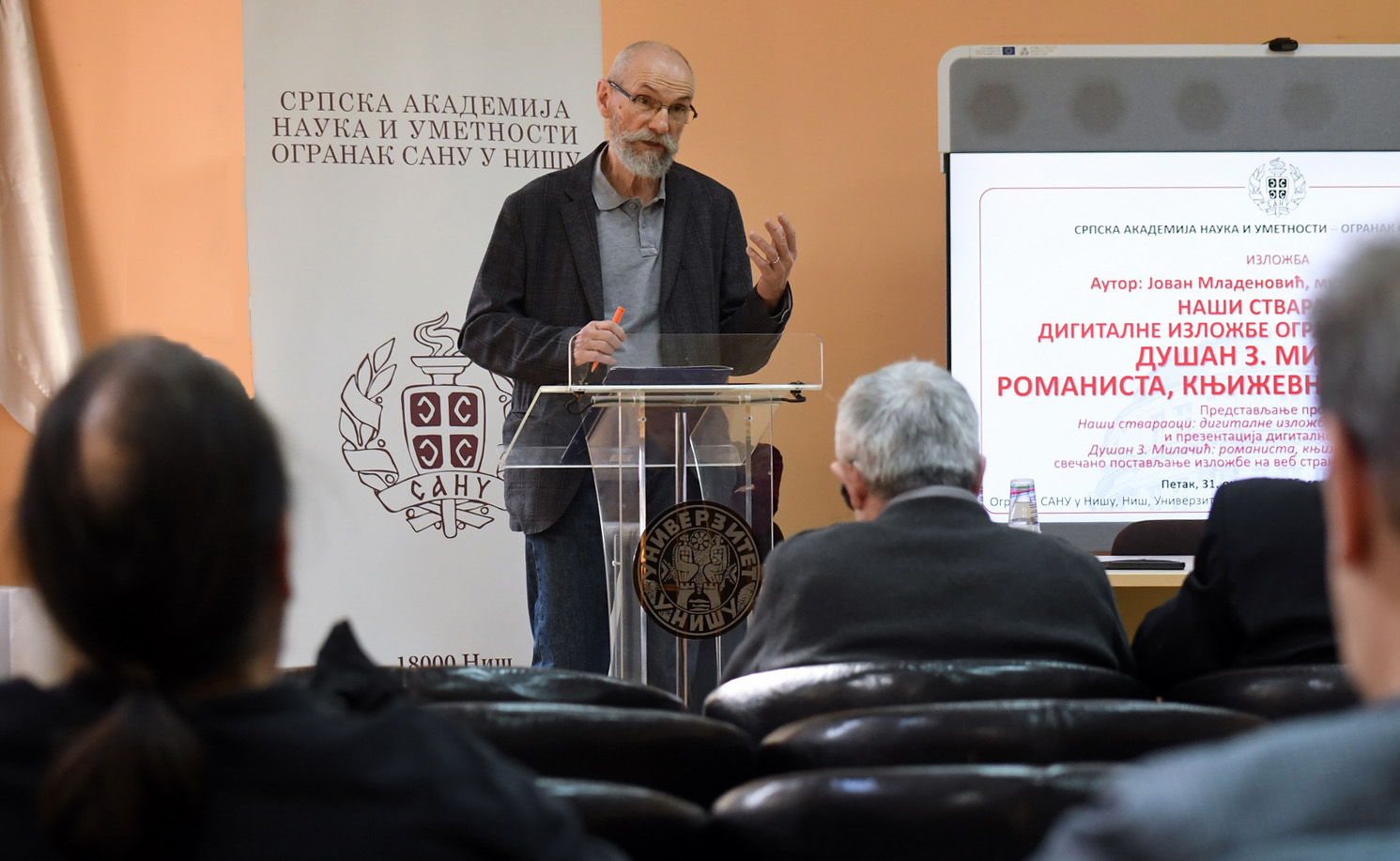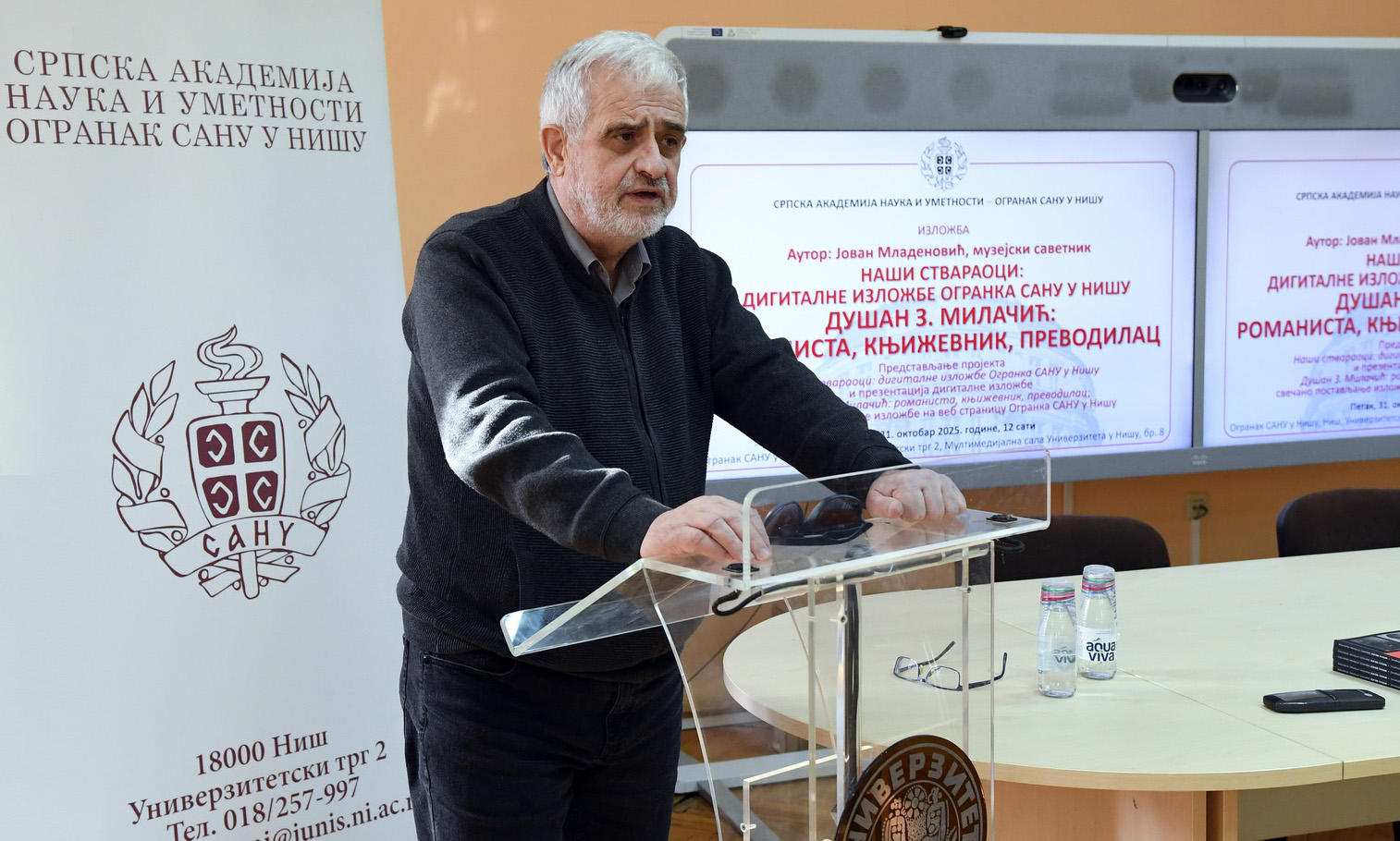У петак, 31. октобра 2025. године, у Огранку САНУ у Нишу представљен је пројект Наши ствараоци: дигиталне изложбе Огранка САНУ у Нишу и одржана презентација дигиталне изложбе Душан З. Милачић: романиста, књижевник, преводилац, са свечаним постављањем изложбе на веб страницу Огранка.