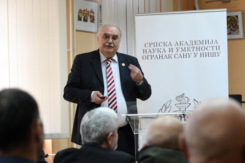 Дописни члан САНУ Влада Вељковић, председник Комисије за руковођење радом Огранка САНУ у Нишу, поздравио је, у име чланова и сарадника Огранка, академика Кнежевића и све присутне, којима се захвалио што на различите начине подржавају рад Огранка и његова настојања да у јужној и источној Србији постојано шири дух и мисију САНУ – промовисањем највиших вредности науке, културе и уметности, образовања просвећености (коју схватамо као способност за слободну и аутономну употребу сопственог разума), слободног критичког мишљења, истраживањем проблема опстанка и развоја у савременом друштву, као и проучавањем, тумачењем и очувањем локалних, регионалних и националних идентитетских вредности традиције, најзад, афирмисањем најбољих резултата научних и уметничких стваралаца везаних за овај део наше земље. Уваженом госту, академику Кнежевићу, дописни члан САНУ Вељковић захвалио се што је у својству генералног секретара САНУ, а од прошле године и председника САНУ, показао пуно разумевање за значај оснивања Огранка САНУ у Нишу, и пружао свесрдну помоћ неопходну за његов опстанак и развој, а потом је изнео најважније податке из професионалне биографије академика Кнежевића.
