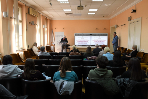 Ову годишњицу Огранак обележава јавним предавањем проф. др Горана Максимовића, са чијом краћом биографијом је академик Вељковић упознао присутне.