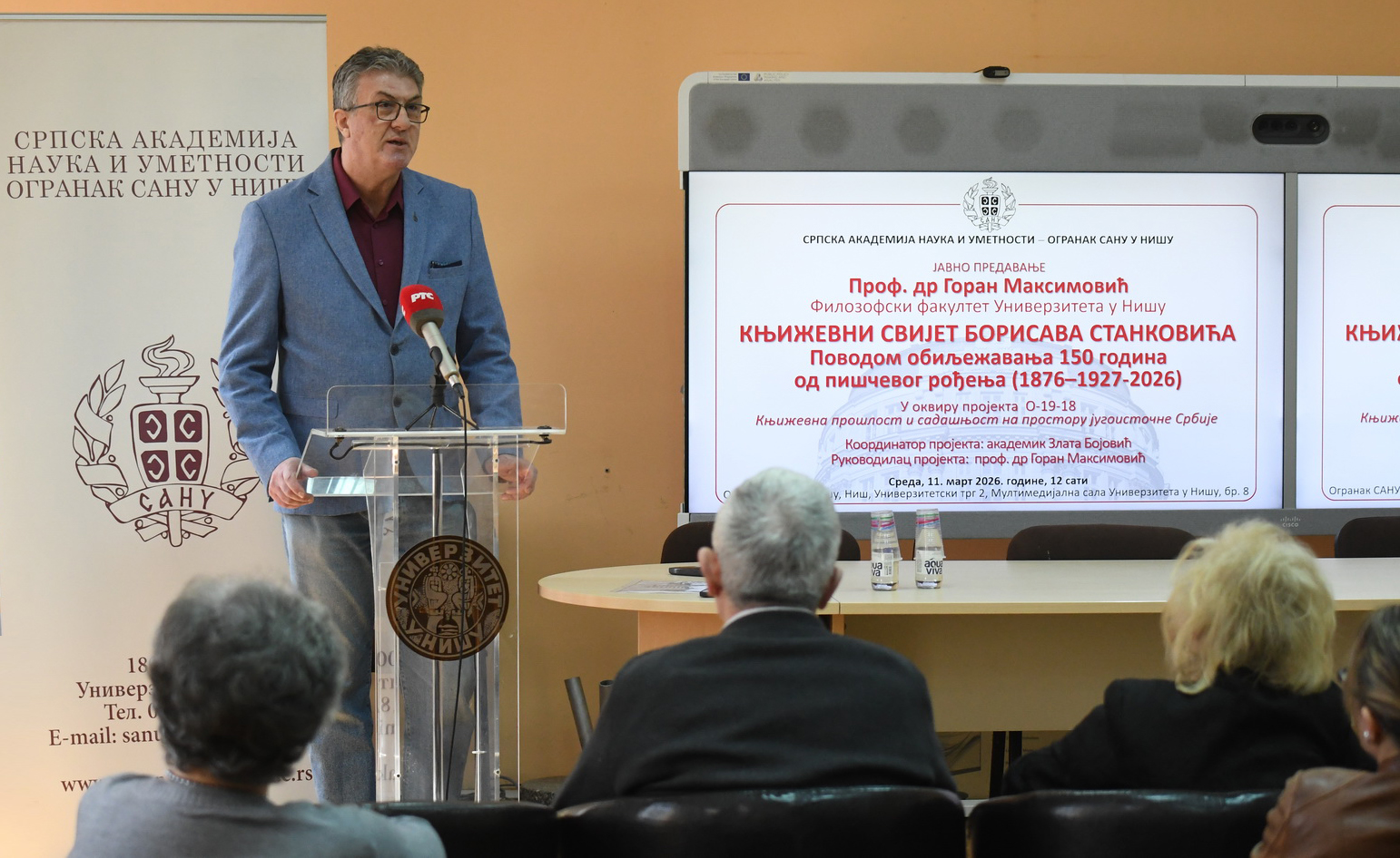 У среду, 11. марта 2026. године, у Огранку САНУ у Нишу одржано је јавно предавање проф. др Горана Максимовића Књижевни свијет Борисава Станковића: поводом обиљежавања 150 година од пишчевог рођења (1876–1927–2026), организовано у оквиру пројекта Огранка О-19-18 Књижевна прошлост и садашњост на простору југоисточне Србије (координатор пројекта: академик Злата Бојовић, руководилац пројекта: проф. др Горан Максимовић).