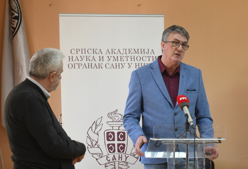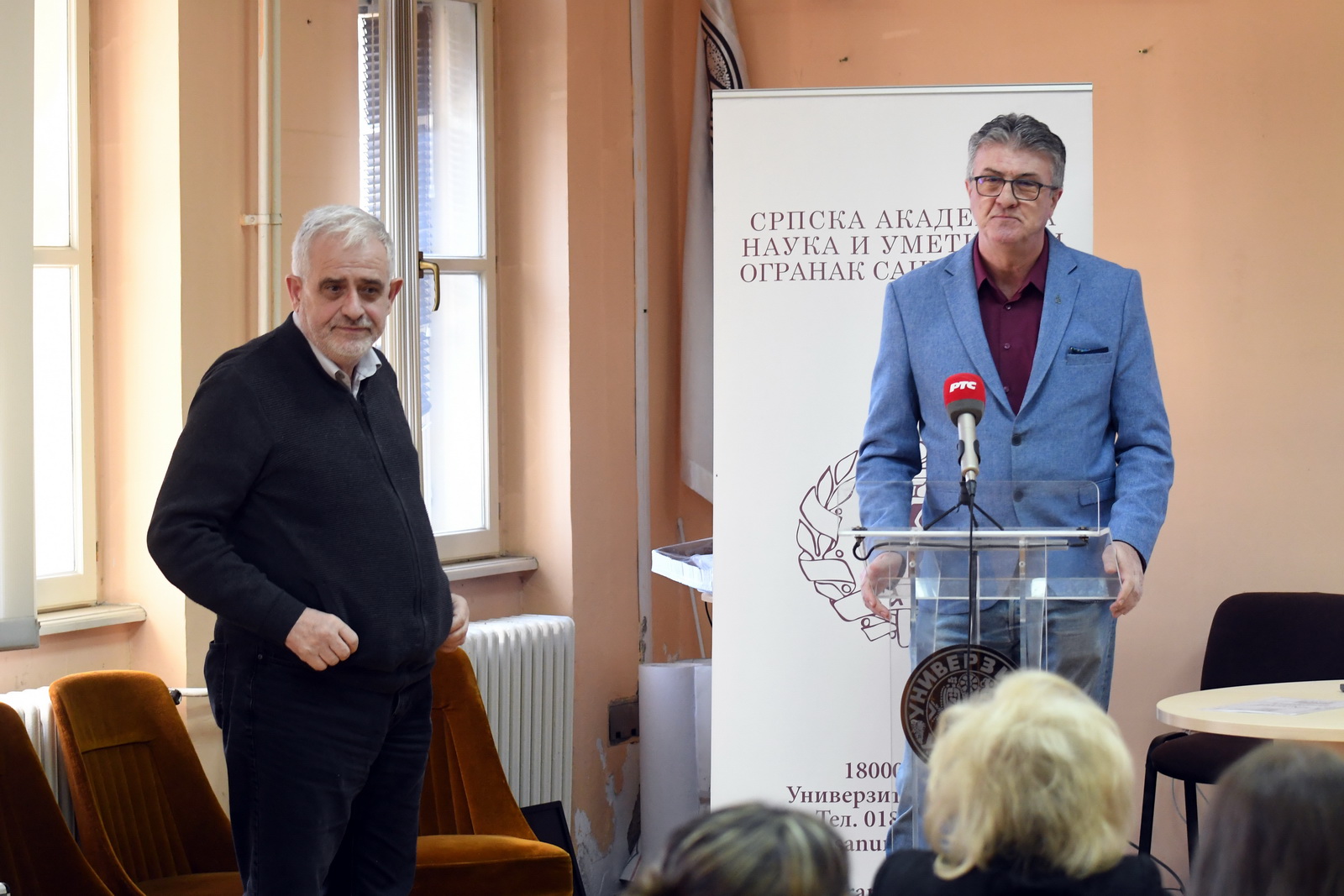 Академик Влада Вељковић, председник Огранка САНУ у Нишу, поздравио је, у име руководства, чланова и сарадника Огранка, све присутне, и захвалио на учешћу у јавним активностима Огранка и подршци у настојању Огранка да шири мисију САНУ – (1) афирмисањем највиших идеја и вредности науке, културе и уметности, образовања, просвећености, аутономије критичког мишљења итд.; (2) учешћем у савременим истраживањима акутних проблема у свим научним областима; (3) изучавањем, тумачењем и очувањем традиције; (4) афирмисањем резултата научних и уметничких стваралаца из југоисточне Србије. Подвукао је уверење да се та подршка односи и на уважавање научно заснованих сазнања и мишљења о актуалним проблемима нашег друштва, као и на одбрану слободе, законитости и аутономије у области оснивања, рада и деловања најзначајнијих друштвених установа науке, културе, уметности и образовања (попут института, универзитета и факултета, позоришта, медија итд.). Када је реч о задатку изучавања, тумачења и очувања традиције, националне културе и уметности, додао је академик Вељковић, Огранак га извршава реализацијом научоистраживачких пројеката, научних скупова и организовањем различитих форми јавних активности, као што су јавна предавања, округли столови, изложбе, најзад, издавањем монографија, зборника радова итд. Академија нарочито држи до обележавања значајних годишњица које се тичу живота и рада наших истакнутих научних и уметничких стваралаца, а Огранак у овој сфери посебну пажњу посвећује ствараоцима који су на неки начин (рођењем, боравком, службовањем, тематиком својих дела…) везани за југоисточну Србију (што је, уосталом, један од поменутих задатака Огранка). Ове године САНУ, и читава Република, између осталог, обележавају 150 година од рођења једног од највећих српских књижевника – Борисава Боре Станковића, писца који је на најбољи могући начин, стварањем књижевних дела непролазне вредности, не само обогатио српску књижевност, већ „искупио” читав српски Југ, са његовим историјским, језичким, културним, обичајним… посебностима, обезбеђујући му боље, премда још увек не и равноправно, место у српској култури, за шта је платио високу животну цену. На трагу његових дела, као и промовисањем и афирмисањем дела других стваралаца из овог дела наше земље, Огранак скромно настоји да дâ прилог тој борби за уважавањем равноправност књижевног и културног бића југоисточне Србије, закључио је академик Вељковић.