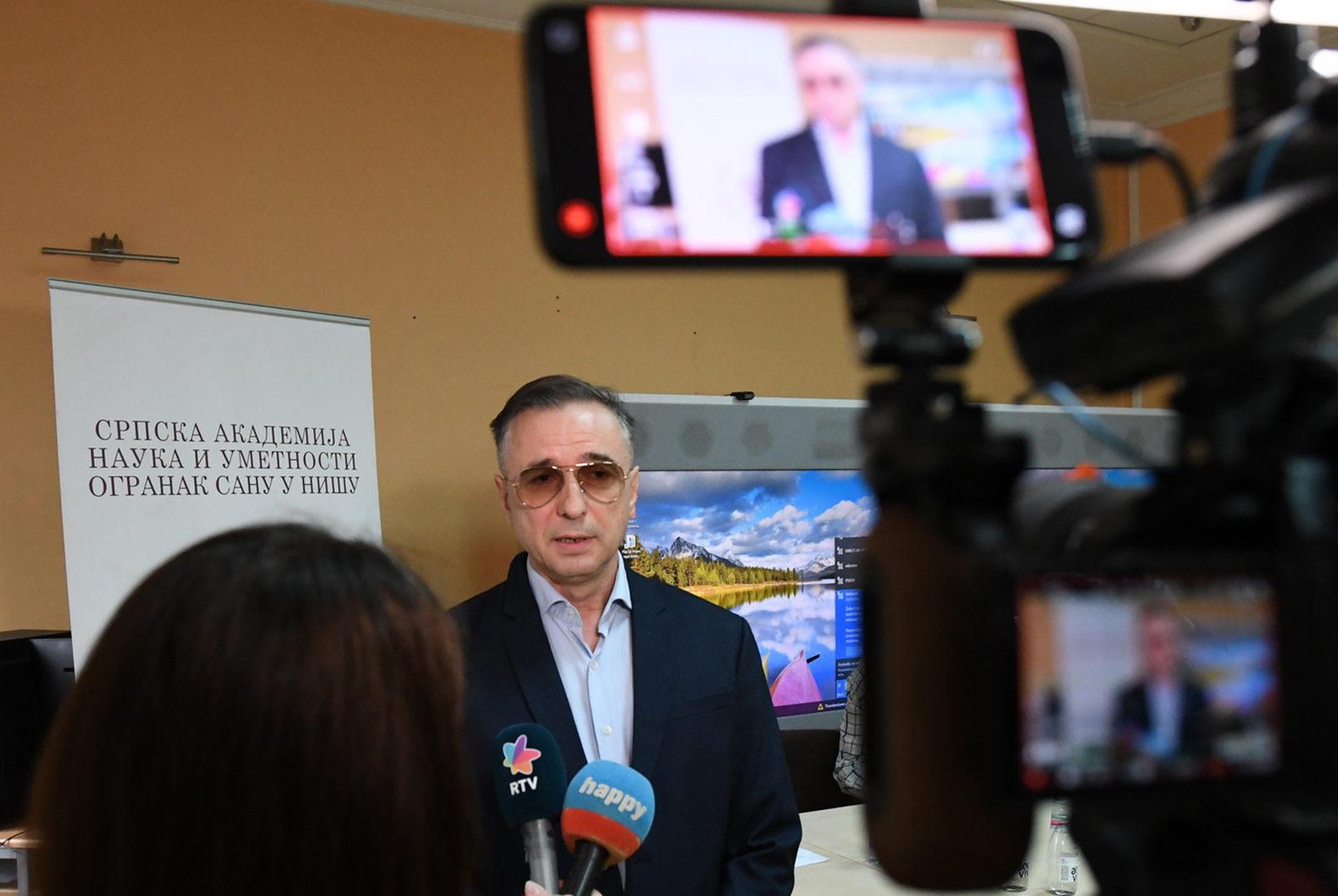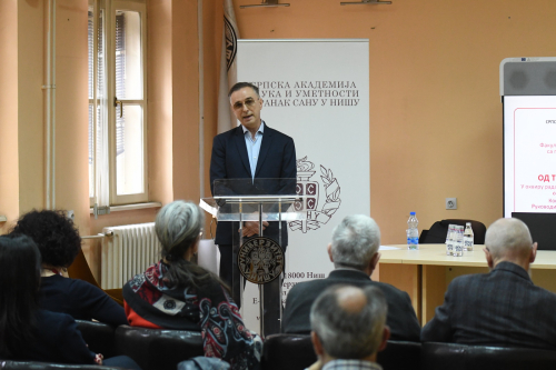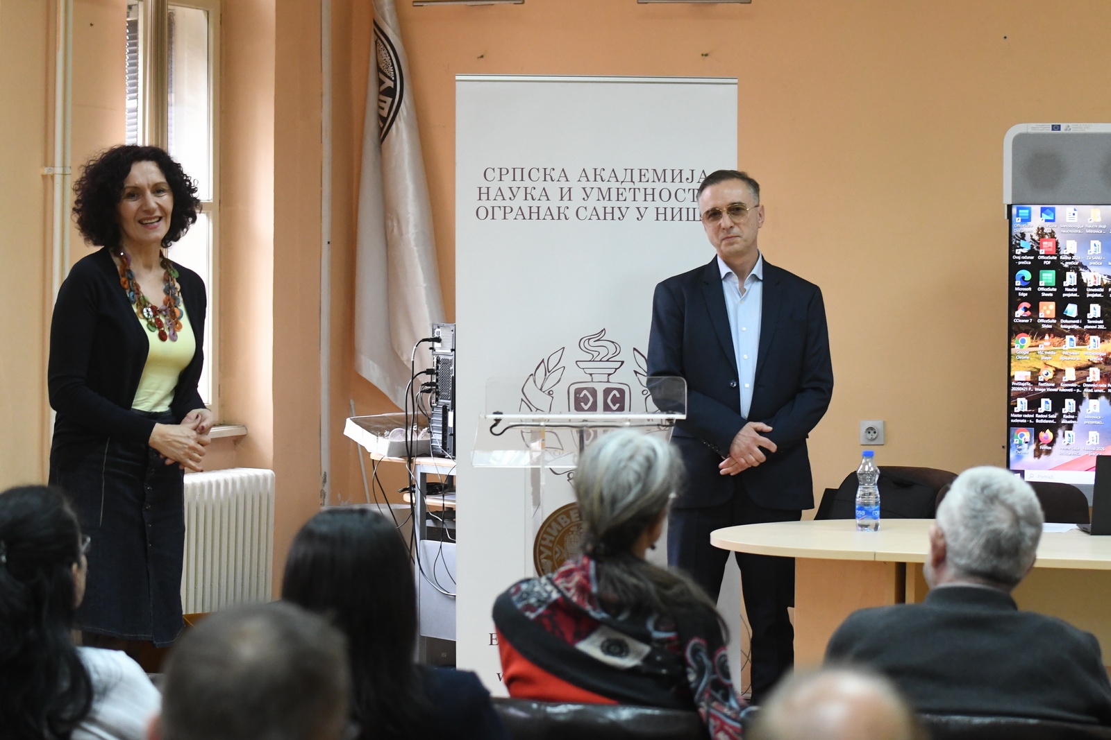У име чланова и сарадника Огранка САНУ у Нишу, академик Влада Вељковић, председник Огранка, поздравио је присутне, а са посебним задовољством академика Јелену Јовановић, координатора пројекта, и госта Огранка, др Сашу Божидаревића, редовног професора Факултета уметности у Косовској Митровици – Звечану и Академије уметности у Београду, и захвалио му се што се одазвао позиву да у Огранку одржи јавно предавање. Изразе захвалности упутио је и проф. др Данијели Здравић Михаиловић, руководиоцу пројекта, која је иницирала ово предавање и посредовала у његовој реализацији. И овим предавањем, истакао је академик Вељковић, Огранак наставља своје јавно деловање у настојању да истрајно шири мисију САНУ у јужној и источној Србији, и то: (1) афирмисањем највиших идеја и вредности науке, културе и уметности, образовања, просвећености, аутономије критичког мишљења итд.; (2) учешћем у савременим истраживањима значајних феномена у свим сферама природе и друштва и испитивањем одговарајућих научних проблема; (3) изучавањем, тумачењем и очувањем традиције; (4) афирмисањем резултата научних и уметничких стваралаца из југоисточне Србије, и оних стваралаца који су на неки начин везани за ову регију (школовањем, радним ангажманом, тематиком свог рада итд.). Председник Огранка додао је да се, осим поменутих задатака, у Огранку јако држи и до уважавања научно заснованих сазнања и мишљења о актуалним проблемима нашег друштва, као и до одбране слободе, законитости и аутономије у области оснивања, рада и деловања најзначајнијих друштвених установа науке, културе, уметности и образовања (попут института, универзитета и факултета, позоришта, медија итд.), и захвалио свима што подржавају настојања Огранка.