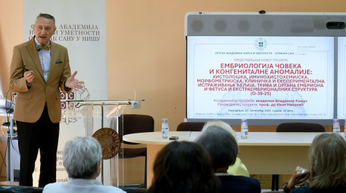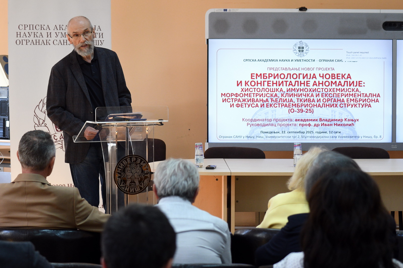 У понедељак, 22. септембра 2025. године, у Огранку САНУ у Нишу представљен је нови пројект Огранка О-39-25 Ембриологија човека и конгениталне аномалије: хистолошка, имунохистохемијска, морфометријска, клиничка и експериментална истраживања ћелија, ткива и органа ембриона и фетуса и екстраембрионалних структура. Координатор пројекта је академик Владимир Кањух, а руководилац пројекта др Иван Николић, редовни професор Медицинског факултета Универзитета у Нишу.