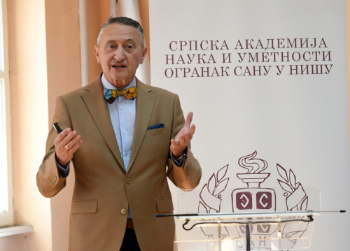 Проф. др Драган Жунић, координатор програма рада Сектора Огранка, пренео је присутнима поздраве руководства, чланова и сарадника Огранка, као и изразе захвалности због тога што учешћем у јавним активностима Огранка, као и присуством, и даље подржаваjу Огранак у настојању да истрајно шири мисију САНУ, и подсетио на основне задатке Огранка у ширењу те мисије – од промовисања највиших вредности и идеја науке, културе и уметности, образовања, просвећености, неговања и охрабривања слободног критичког мишљења, преко научних истраживања како савремености тако и традиције, до афирмисања научног и уметничког стваралаштва југоисточне Србије. Упознао је присутне и са научноистраживачким пројектима Огранка, и, најављујући презентацију најновијег пројекта, најпре укратко представио руководиоца пројекта, проф. др Ивана Николића, дугогодишњег осведоченог поштоваоца и пријатеља Огранка САНУ у Нишу.