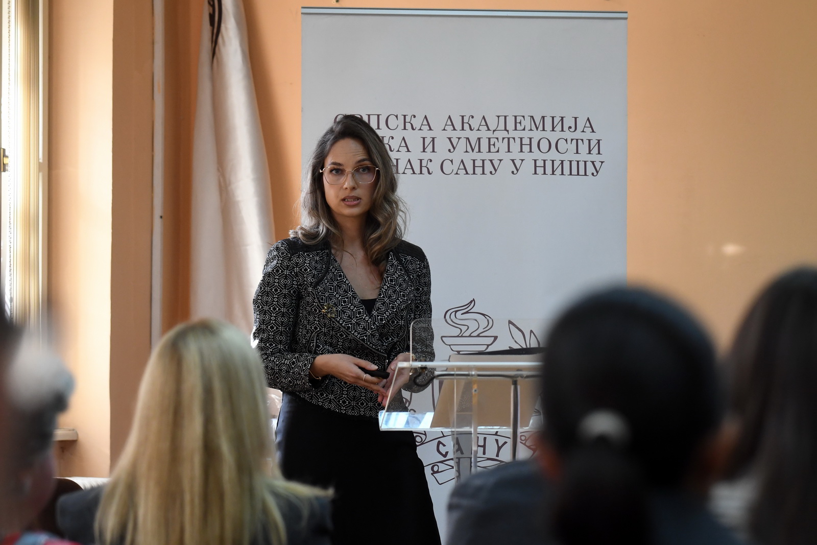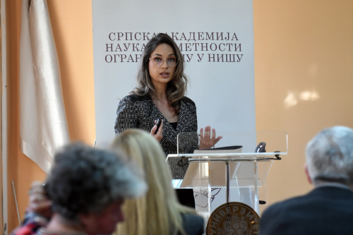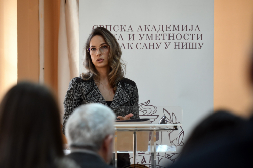 Академик Влада Вељковић, председник Огранка САНУ у Нишу, поздравио је – у име чланова и сарадника Огранка – све присутне, и захвалио на учешћу у јавним активностима Огранак и на подршци у настојањима у Огранка да шири мисију САНУ – (1) афирмисањем највиших идеја и вредности науке, културе и уметности, образовања, просвећености, идеја слободе, правде, равноправности, законитости, демократије, аутономије критичког мишљења итд.; (2) учешћем у савременим истраживањима актуалних и акутних проблема у свим научним областима; (3) изучавањем, тумачењем и очувањем традиције; (4) афирмисањем резултата научних и уметничких стваралаца из југоисточне Србије. Афирмисање и поштовање поменутих вредности, истакао је академик Вељковић, као и учешће у научном истраживању, разумевању и објашњавању савремене друштвене стварности, између осталог, подразумевају и уважавање научно заснованих сазнања и мишљења о актуалним и акутним проблемима нашег друштва, као и одбрану слободе, законитости и аутономије у области оснивања, рада и деловања најзначајнијих друштвених установа науке, културе, уметности, као и образовних установа, попут универзитета и чланица појединих универзитета. У јавним активностима Огранка већ је уобичајено, па и видљиво, да се прожимају задаци тумачења и очувања традиције са афирмисањем резултата научног рада савремених, млађих истраживача из овог дела наше земље – пре свега, у области дијалектолошких и фолклористичких истраживања трансформације и опстајања традицијских феномена у савременој обичајности, језику и свакидашњој култури. Ове јесени је било организовано већ неколико представљања и предавања са темом традиције: Српска дијалектологија и лингвистички атласи, Сакупљање и објављивање народних умотворина као политички ангажман, Пастирска лексика призренско-тимочких говора, Ој, јабуко зеленико: радионице српског традиционалног певања и његови настављачи, Теренска лингвистичка и фолклористичка истраживања и 21. веку: одакле смо почели и докле смо стигли, Тефтери са простора југоисточне Србије као извори за језичка истраживања (18. и 19. век). Све наведене теме обрађиване су у оквиру реализације појединих пројеката Огранка. И представљање резултата истраживачког рада др Сандре Савић Слика човека у микротопонимији Заплања представља један такав спој – савремени истраживач, па још из овога дела наше земље, и бављење (језичким) наслеђем.