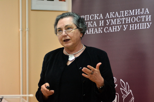 Најпре је дописни члан САНУ Влада Вељковић, председник Комисије за руковођење радом Огранка САНУ у Нишу, поздрављајући присутне, представио професорку Стојановић, која је изразила захвалност због сарадње са Огранком, посебно подвлачећи заслуге пок. академика Нинослава Стојадиновића, председника Огранка, и пок. академика Милорада Митковића, потпредседника Огранка, за високе постављене стандарде у раду Огранка и одговарајуће резултате.