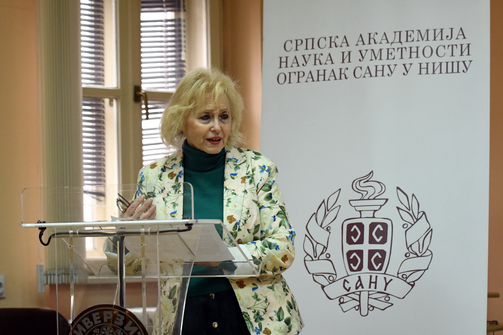 На позив дописног члана САНУ Гордане Коцић да представи аутора књиге, своју уводну реч, реч захвалности организаторима, аутору, учесницима и публици, проф. др Данијела Поповић Николић, руководилац пројекта, допунила је основним биографским подацима о аутору, најзначајнијим публикацијама, његовом раду у настави, правцима научних интересовања и истраживања.