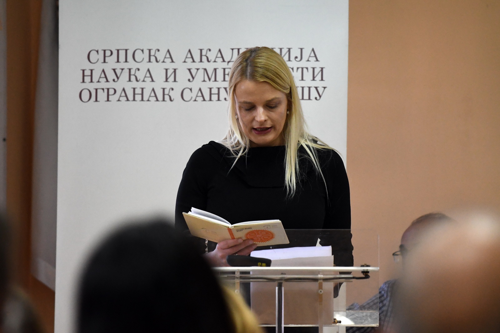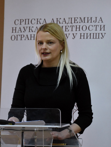 Учеснике и све присутне поздравио је проф. др Драган Жунић, координатор програма рада Сектора Огранка, и пренео им поздраве академика Владе Вељковића, председника Огранка САНУ у Нишу, дописног члана САНУ Гордане Коцић, секретара Огранка, као и свих чланова и сарадника Огранка. Професор Жунић је говорио о задацима Огранка у ширењу мисије САНУ, у одбрани слободе, законитости и аутономије у области оснивања, рада и деловања најзначајнијих друштвених установа науке, културе, уметности и образовања (попут института, универзитета и факултета, позоришта, медија итд.). Подсетио је на неретко прожимање задатка истраживања, тумачења и очувања традиције са задатком афирмисања најбољих резултата научних и уметничких стваралаца, те настављача традиције, везаних за југоисточну Србију, истичући да Огранак на том пољу ради у форми научноистраживачких пројеката и различитих јавних форми представљања и промоције резултата научних и уметничких истраживања.